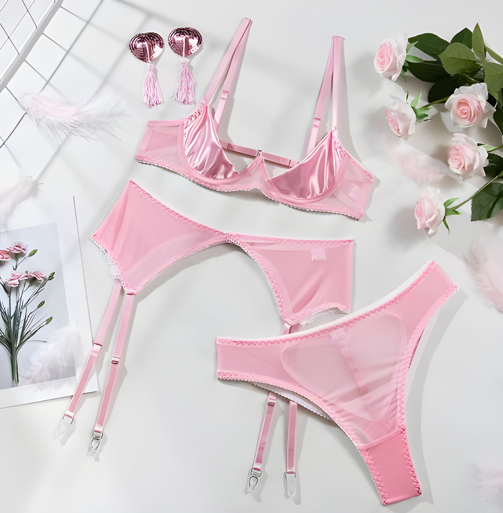 Känn dig oemotståndlig på ett ögonblick i Lynn™ Midnight Passion Lingerie Set – underkläder som omfamnar dina kurvor och låter dig känna dig sensuell och självsäker, oavsett tillfälle.
