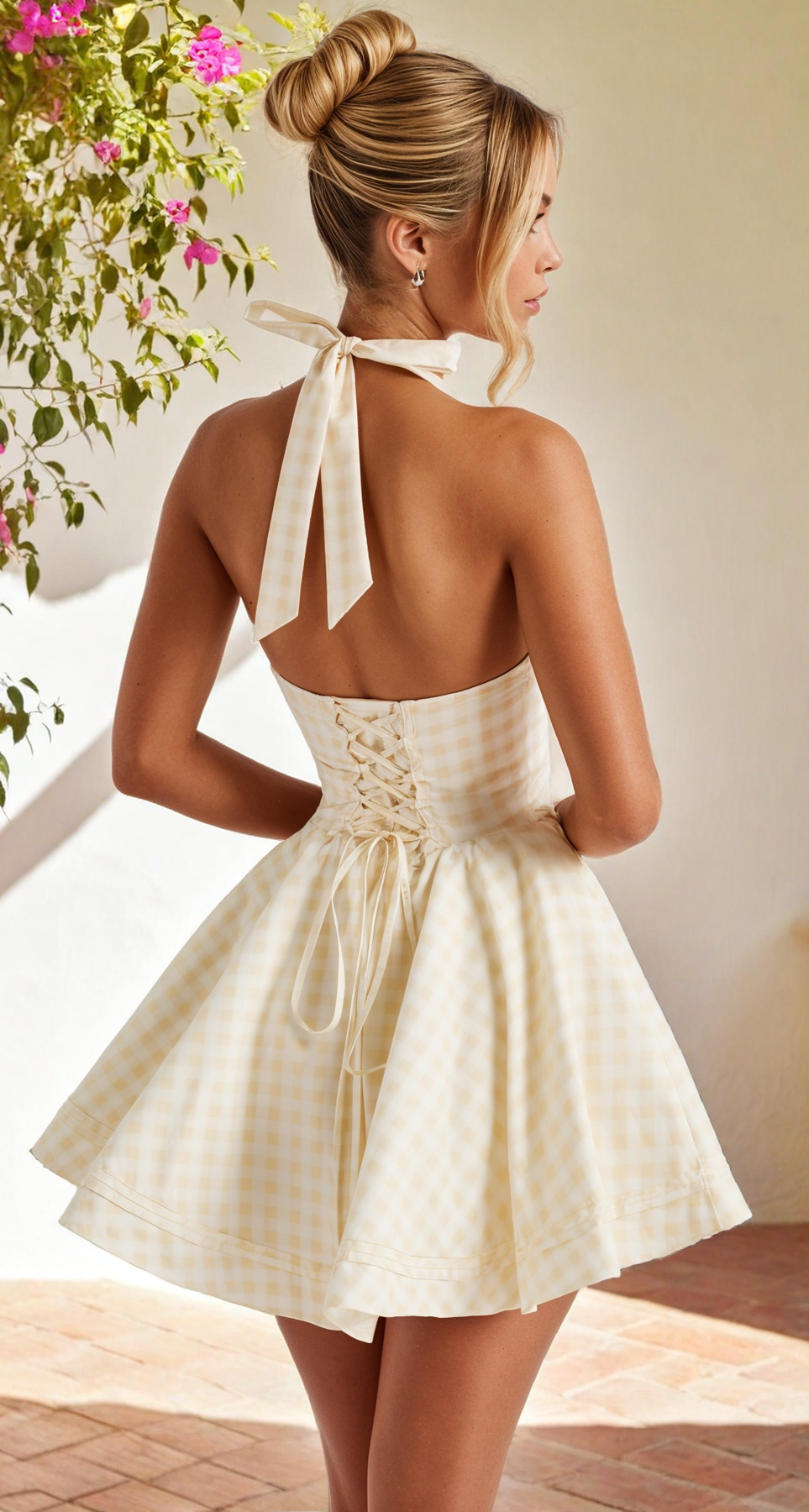 Aurora™ är där vintage möter nutid — en lätt och charmig klänning i solgul gingham som fångar känslan av sommar, frihet och tidlös kvinnlighet.