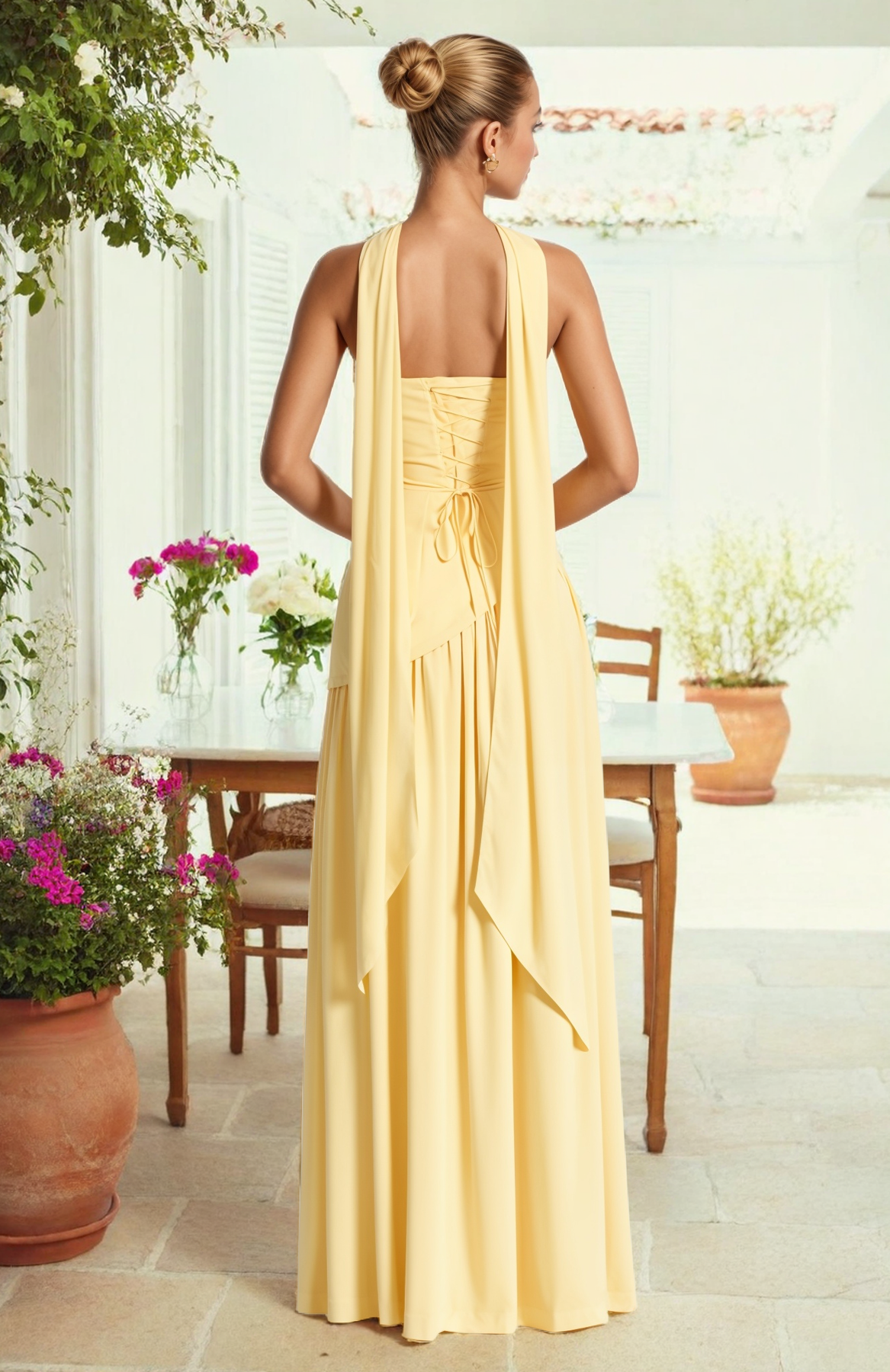 Luna™ har en skulpterad axelbandslös överdel och en flödande solgul kjol – perfekt för soliga dagar och eleganta kvällar.